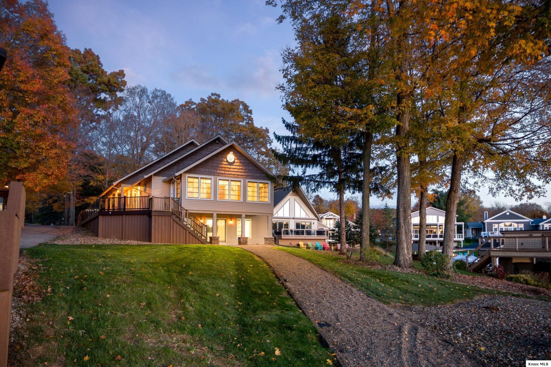 Linger by the lake with your warm mug in hand at your home in Apple Valley, Ohio, with over 95ft of waterfrontage! The open-concept atrium kitchen, living room, breakfast nook, and sunroom are designed to maximize the glittering lakefront view. The cabinet-filled kitchen is a baker's delight with double ovens and generous counterspace. Experience the convenience of the entry-level primary suite with built-ins & attached full bath with jetted tub, shower, and dual sinks. Across the hall, find the half bath, 2-car garage, and second bathroom with ensuite bath. Downstairs is the guest bedroom, office, laundry, full bath, and family room. Relax in the luxury of lake views in every cozy corner from the fireplaces, sunroom, family room, wraparound deck, dock, and lakefront patio. Conveniently located on the south side of Apple Valley near the main entrance. Enjoy all that Apple Valley has to offer, including the marina, clubhouse, beaches, pools, playground, pickleball club, and more. Come see for yourself!
